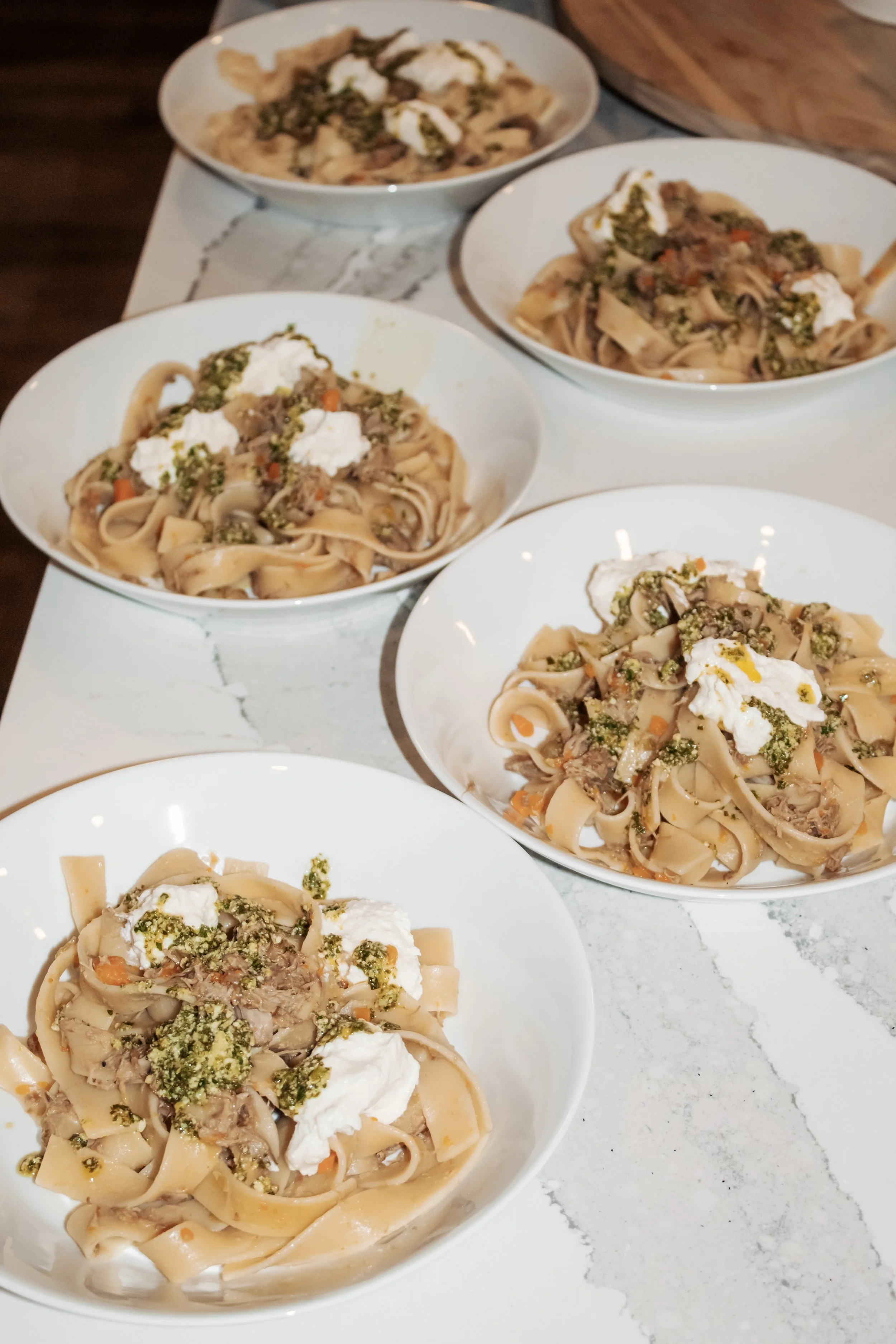 The slowly braised lamb ragu gets extremely tender and flavorful—thanks to cooking it a day ahead to let the flavors come together. The mint pesto complements the lamb beautifully, and the lemony ricotta cuts through the richness perfectly. Store-bought pappardelle (or homemade if that’s your thing), sops up every little last bite and helps round out a truly amazing meal. As I said before, the ragu, pesto, and ricotta can be made in advance of serving. This one is a winner.